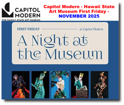 - 11/7/2025 - Capitol Modern - Hawaii State Art Museum First Friday - NOVEMBER 2025 - "A NIGHT AT THE MUSEUM" TAKEOVER WITH IONA - 5:00pm - 9:00pm