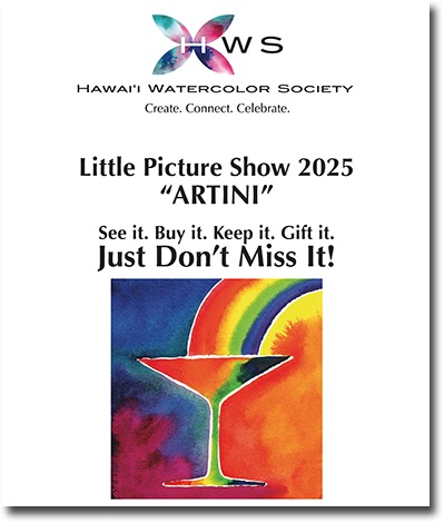 This exhibition by Hawaii Watercolor Society features 62 gorgeous paintings in water media by 51 local artists, selected by juror Gary Tucker. - Hawaii Watercolor Society's - Little Picture Show - ARTINI: - See It, Buy It, Keep It, Gift It. Just DonŐt Miss It!