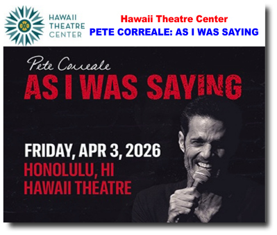 Pete has performed on numerous late night tv shows such as The Tonight Show, Letterman and Conan. as well as filming three of his own one hour television comedy specials, THINGS WE DO FOR LOVE, LET ME TELL YA and the last being on FOR PETE’S SAKE. He has also released two comedy albums, GIVE IT A REST and MADE FOR RADIO. - 4/3/2026 - Downtown Art Center Presents - Heat and Pressure: Honolulu Printmakers’ 97th Annual Exhibition + Hawaiʻi Craftsmen’s Raku Invitational & “Beauty of Pastels 2026” Pastel Artists of Hawaiʻi Annual Open Juried Show & DAC Volunteer Art Show 2026 - 5:30 to 8 p.m