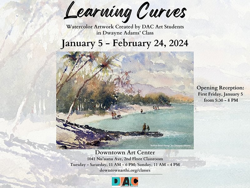 Event Calendar ItemDowntown Art Center Presents - Current Classroom Exhibition - Learning Curves: Watercolor Artwork Created by DAC Art Students in Dwayne Adams’ ClassOn View Until February 24, 2024