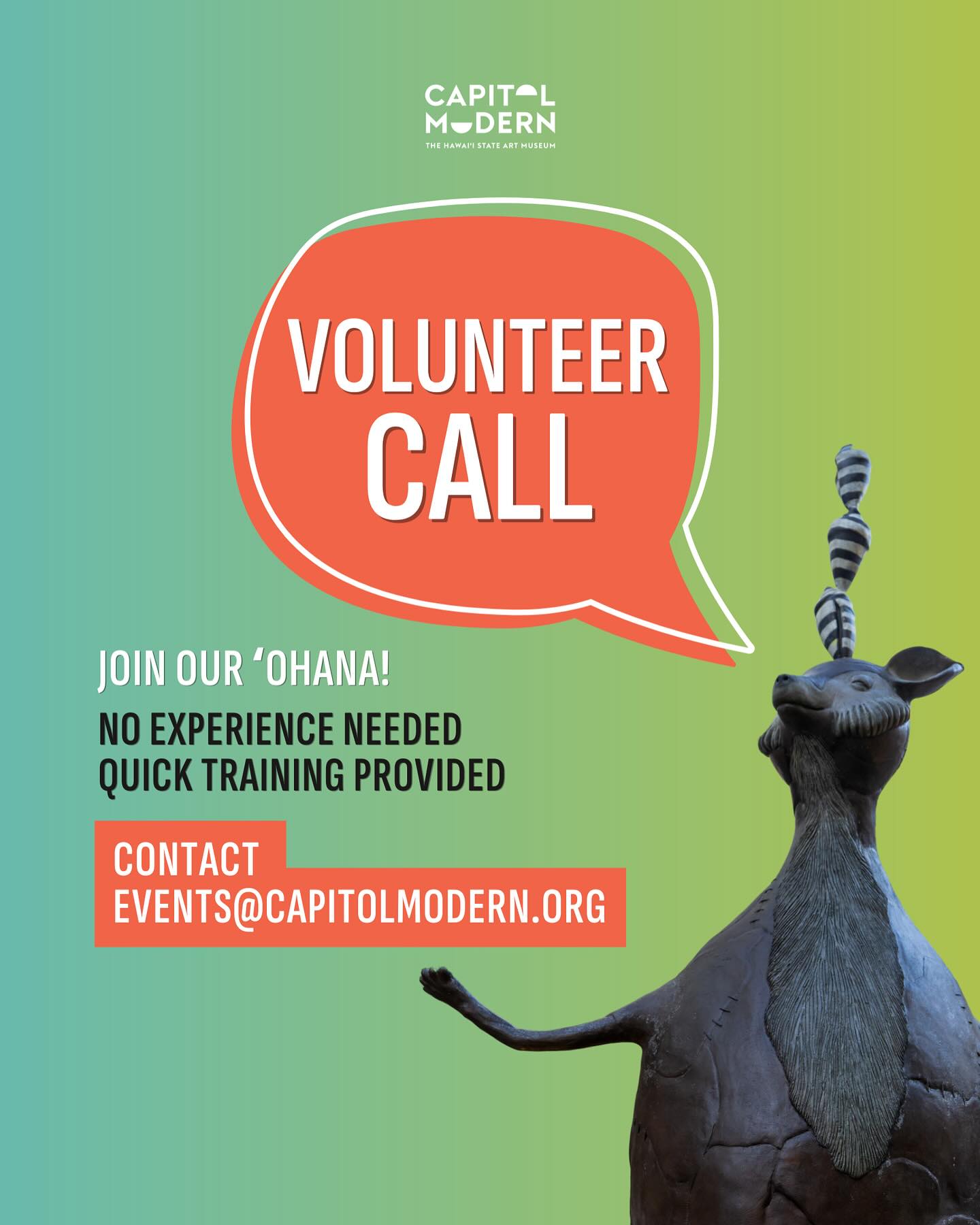 Capitol Modern: the Hawaiʻi State Art Museum is seeking volunteers for November and December events.