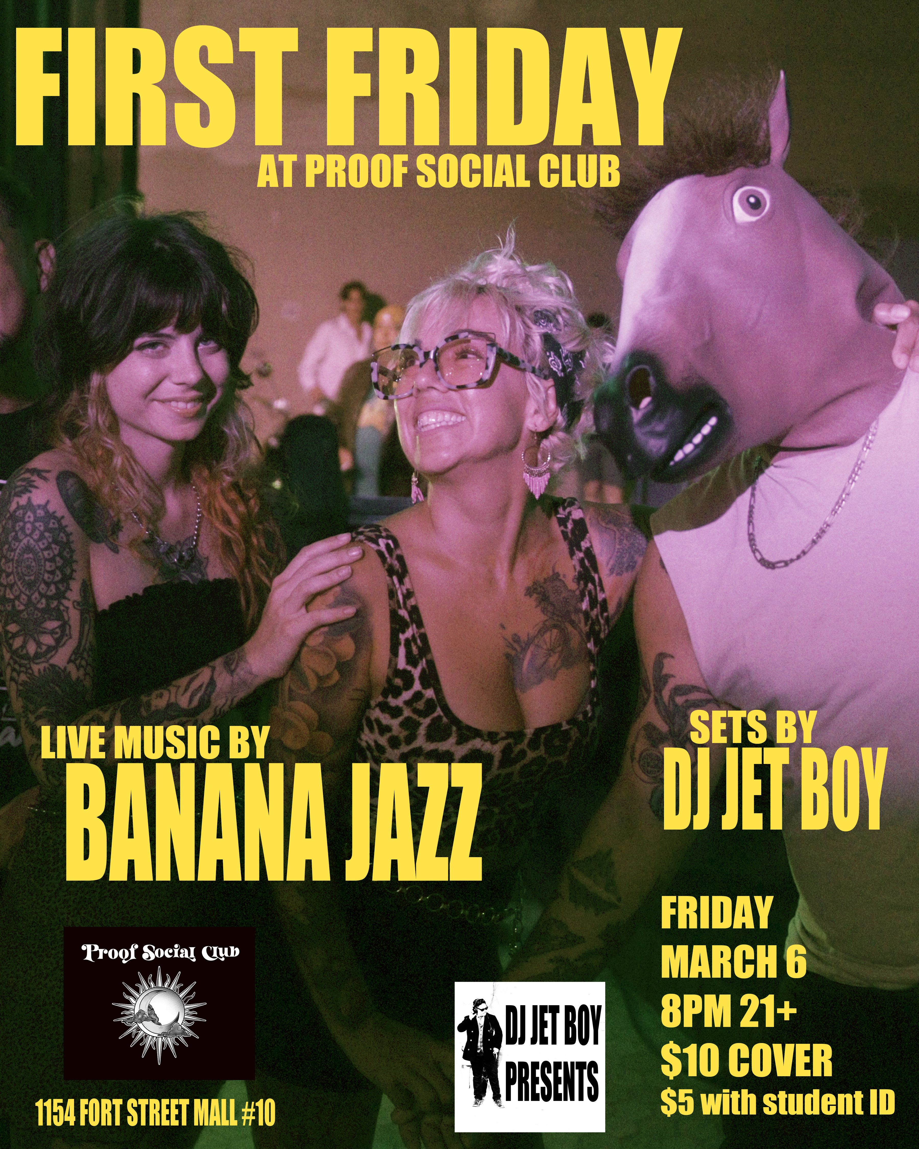 Proof Social Club presents First Friday with live music by Banana Jazz and more