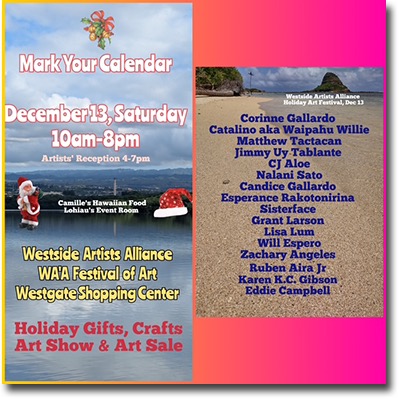 ••The Windward Artists Guild and the Association of Hawaii Artists (AHA) invite you to discover their annual Holiday Art Fair!