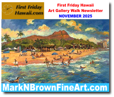 The First First Friday Honolulu Art Gallery Walk is tonight - November 7th, 2025 (see details below). Come on down to Chinatown/Downtown from 5:00 pm to 9:00 pm (with after hour activities until 2:00 am) and visit the galleries and merchants and enjoy their impressive array of exhibits and events.