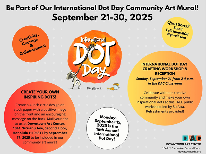 Downtown Art Center (DAC) is an evolving gallery and workshop space for Oahu's arts scene. DAC strives to become a thriving center for the arts by providing display space for local artists and art organizations, workshop classrooms, performances, and more.