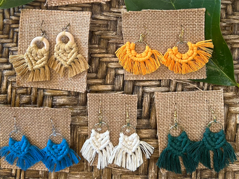 The Hawaiʻi Handweavers' Hui has an exciting lineup of classes at DAC for 2025! Whether you're a beginner, an expert, or somewhere in between, there's a class for you. Register now to try your hand at weaving, jewelry making, Indigo dip dyeing, sewing, and a wide variety of other creative crafts! Photo: Macramé Earrings with Nikki Chin, Saturday, September 27 from 12 to 3 p.m.