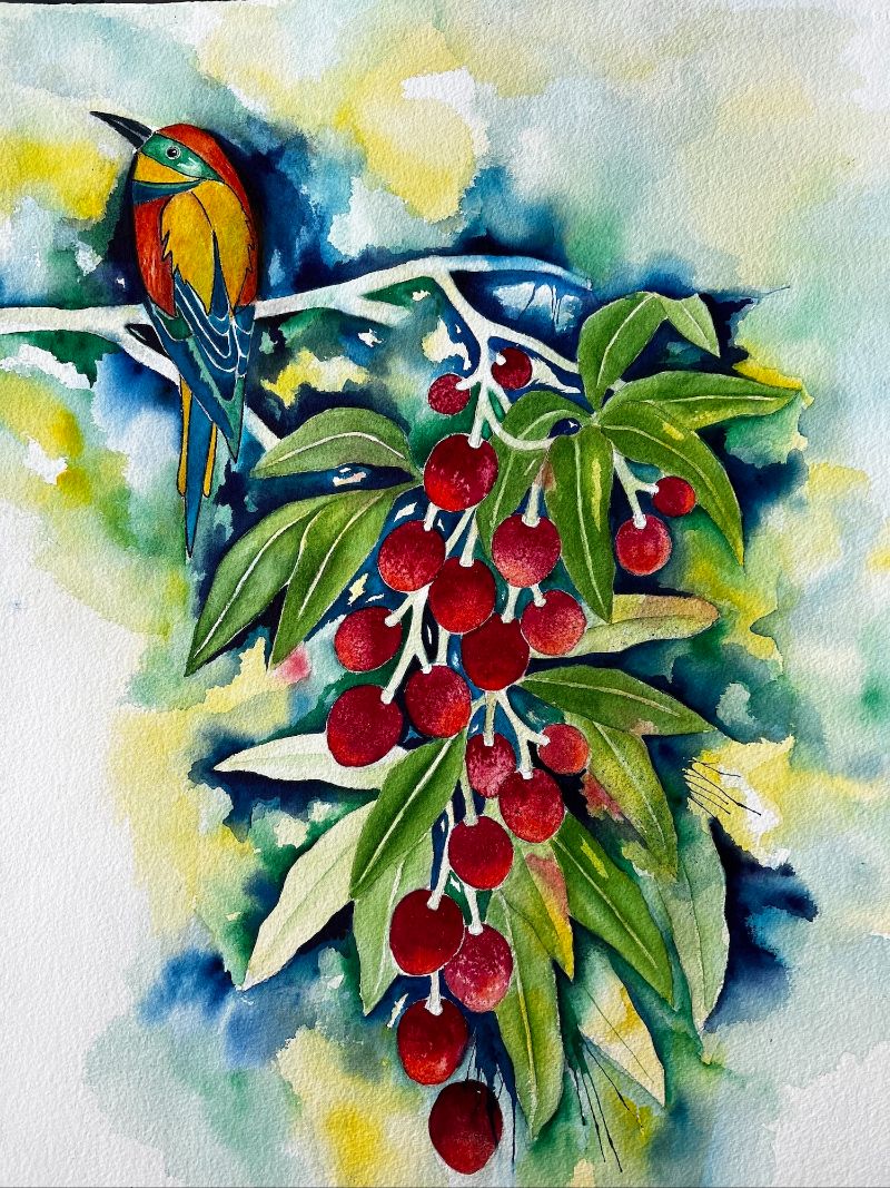 "Lychee for Dinner," by Jennifer Aki. Image courtesy of Hawaiʻi Watercolor Society and the artist. Please do not use without credit.